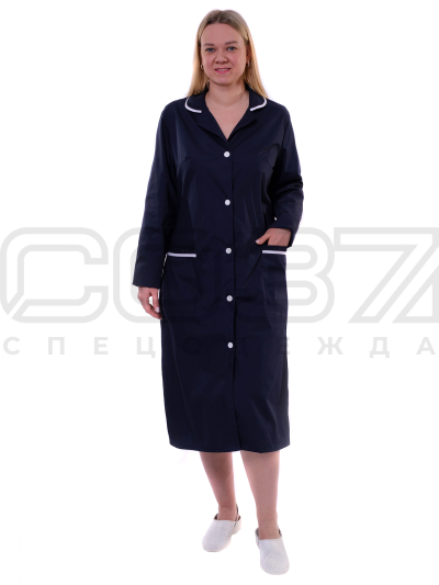 Халат рабочий женский цв.тёмно-синий/белый кант тк.тиси в Луганске