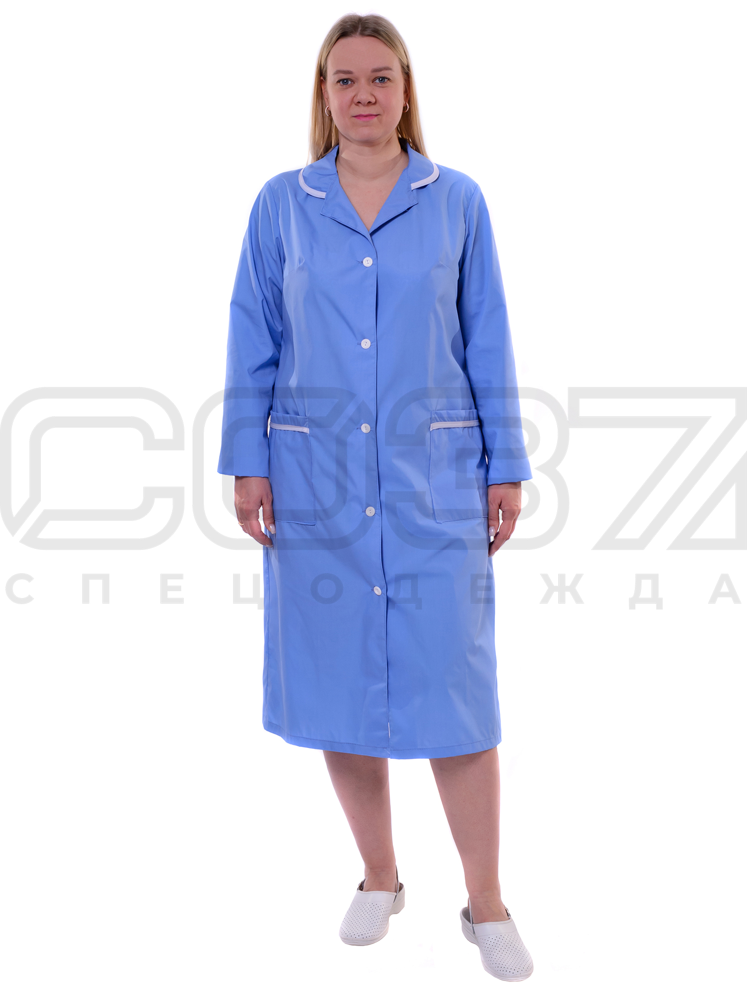 Халат рабочий женский цв.голубой/белый кант тк.тиси в Луганске