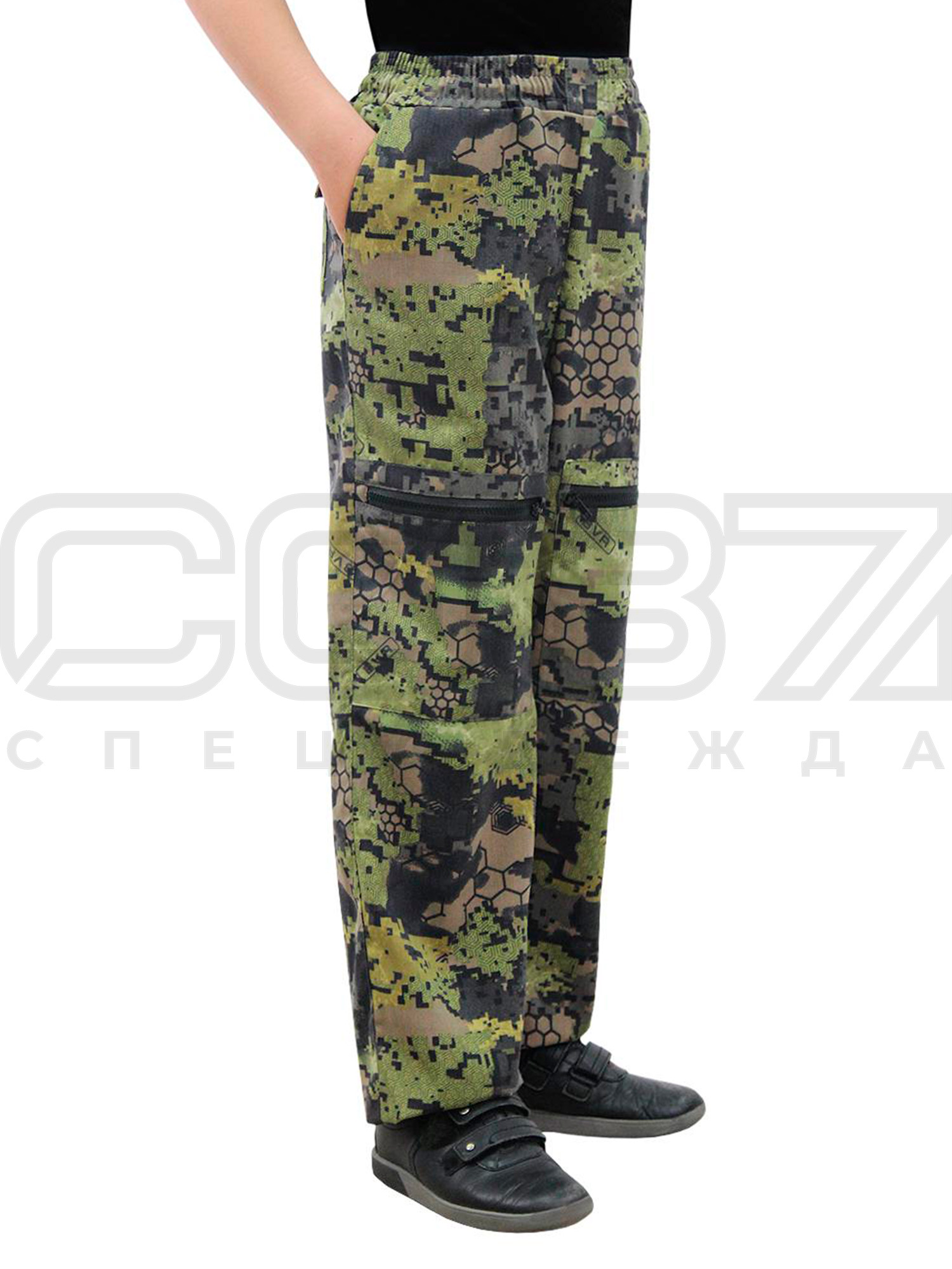 - В области коленей два накладных кармана на молнии.