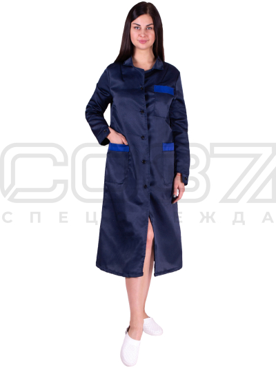 Халат рабочий женский "Конструктор" цв.т.синий/василёк тк.смесовая в Луганске