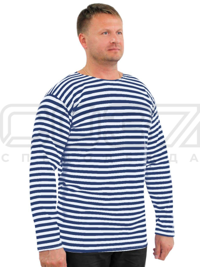 Тельняшка с длинным рукавом, тёмно-синяя полоса.