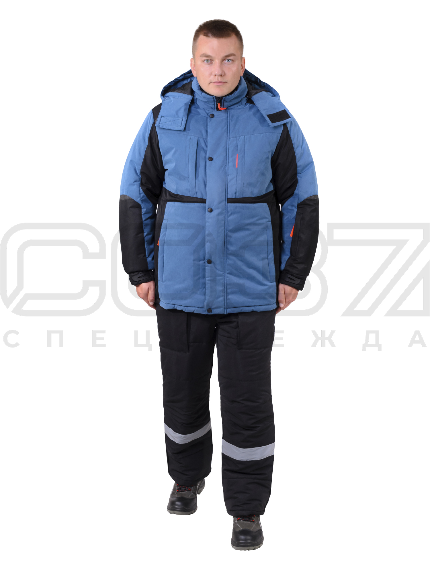 - Капюшон, пристёгивается на молнию, с регулируемым объёмом по лицевому срезу при помощи эластичного шнура и фиксаторов, в затылочной части при помощи хлястика и пряжки.
